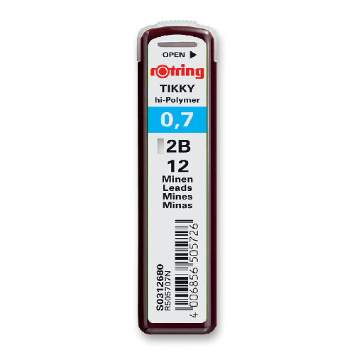 Tuhy Rotring s vysokým obsahem polymerů jsou díky speciálnímu složení extra pevné. Krabička obsahuje 12 ks tuh. Různá šířka a tvrdost tuhy.