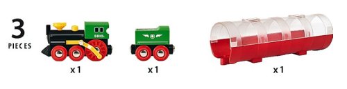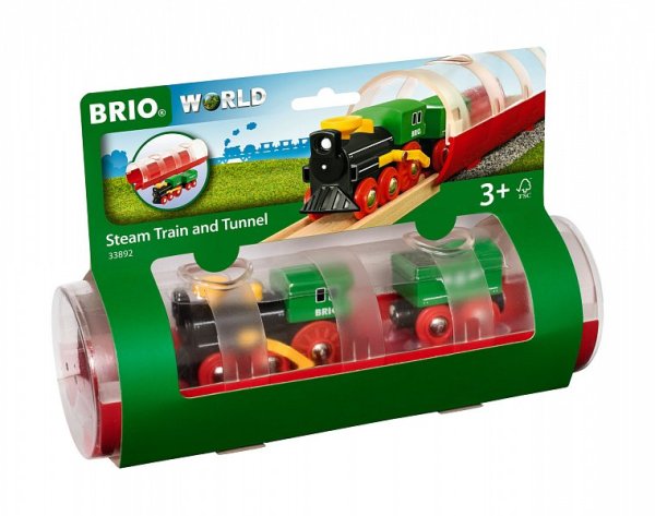 Parní vlak BRIO má klasický vzhled a vystihuje období páry. Parní lokomotiva s červenými koly projede trať tunelem, stejně jako v dobách své největší slávy. Užijte si zábavnou hru se všemi třemi tunely a vlaky - nákladním, osobním a parním (prodejné jednotlivě). Tunel a vlak lze kombinovat s libovolnou železniční tratí BRIO. Hračky BRIO jsou vysoce kvalitní, vytvořené odborníky s důrazem na bezpečnost součástek. Balení obsahuje 3 kusy. Věk: 3+. Rozměr balení: 23,5 x 8 x 15 cm. Rozměrt výrobku: 23,5 x 7,8 x 7,8 cm.