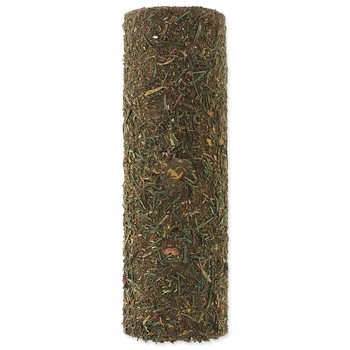 Složení: vláknina, škrob, seno z horských luk 12 %, sušené květy měsíčku lékařského 1,8 %, sušené okvětní lístky růže 0,75 %.
