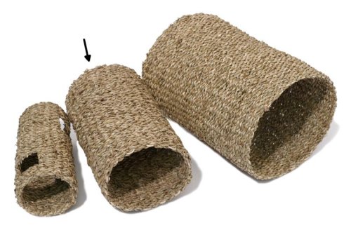 Hračka z 100% přírodního materiálu – mořské trávy. Tunel má několik využití – hračka k probíhání či jako úkryt na odpočinek. Hračka je vhodná pro králíky, potkany, fretky a hlodavce. Hračku je možné žvýkat. Na výrobu tunelu nebyla použita žádná lepidla či spony. Tunel z mořské trávy je k dispozici ve třech velikostech. Rozměry: 25 x 14 cm (délka x průměr).