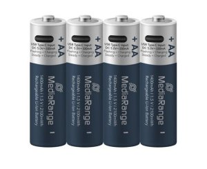 USB-C nabíjení, 1 400 mAh, 1,5 V, až 1200 cyklů, 4 ks, nabití cca 2 hodiny, 4 v 1 kabel.