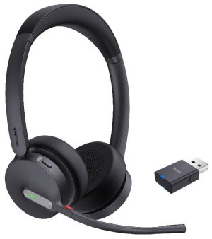 Bezdrátová hybridní sluchátka Yealink WH64 s DECT a Bluetooth technologií pro profesionální komunikaci.