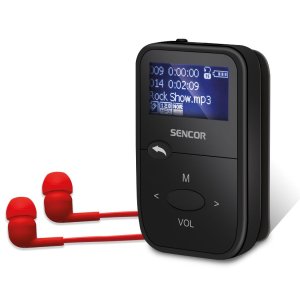 Mp3/MP4 přehrávač Sencor SFP 5870 přehrává hudbu, vnitřní paměť 8 GB rozšiřitelnou o microSDHC kartu. 1,8" barevný LCD displej, vestavěný FM tuner, vestavěný reproduktor, USB