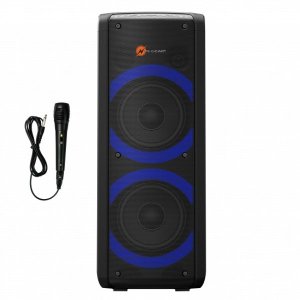 Bezdrátový reproduktor, Bluetooth, 2x 30 W výkon, FM rádio, KARAOKE funkce, LED podsvícení, handsfree, 10 h výdrž, USB/SD/AUX.