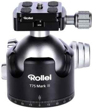 Rollei T7S Mark III; Stativová hlava T7S Mark III udrží fotoaparát do hmotnosti až 26 kg a díky kulovému čepu umožní jeho nastavení do přesně požadované pozice.