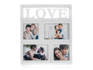 Fotorámeček na 4 LOVE fotografie ve velikosti 2x 9x9 cm a 2x 10x15 cm, je vybaven praktickými závěsy k montáži na stěnu (hmoždinky a vruty nejsou součástí balení).