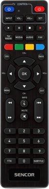 Učící se ovladač pro vybrané set top boxy Sencor, 4 programovatelná tlačítka pro ovládání TV, napájení AAA baterie (nejsou součástí).