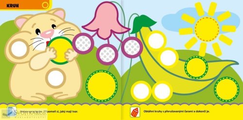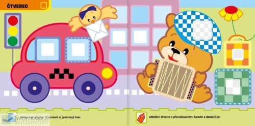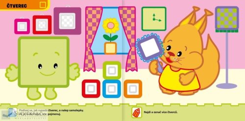 Kniha pro chlapečky a holčičky od 2 do 3 let. Najdou v ní množství zábavných úkolů, naučí se tvary a procvičí šikovnost při výběru a nalepování samolepek. Podej veverce čtvercové zrcátko. Naplň křečkovy tváře, až je bude mít pěkně kulaté. Najdeš houby pod trojúhelníkovými jehličnany? Tyto a mnohé další úkoly najdete v této knížce, která je určena pro nejmenší děti. Hravou formou si zde procvičí ruku při vybarvování, a navíc se naučí rozeznávat základní tvary. Při plnění jednoduchých aktivit děti zjistí, že jsou moc šikovné, a procvičí si postřeh při výběru a dolepování samolepek.