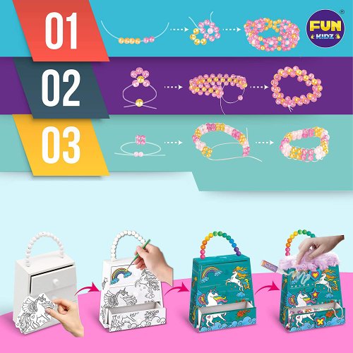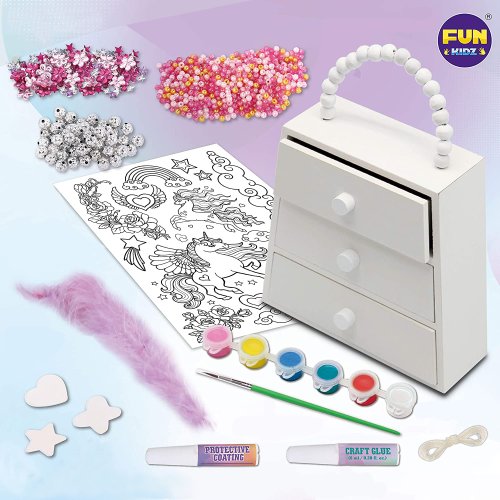 dřevěnou šperkovnici štětec 6 barev šňůrku lepidlo barevné korálky a další ozdoby Rozměr: 20x15x5,5 cm