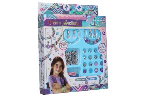 Tvorba náramků a náhrdelníků. Obsahuje 2 náramky, 2 provázky na výrobu náhrdelníku, korálky a přívěšky.