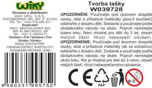 Tvorba tašky. Obrázkový návod na sestavení na zadní straně obalu.