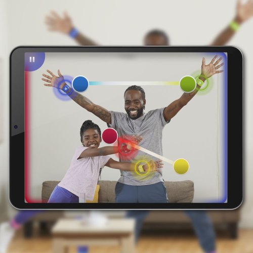 Twister bez podložky? Přesně tak! Zkuste se s Twister Air namísto na podložce dostat do pozice, kterou vidíte na obrazovce. V této verzi hry se za použití aplikace zábava přenese přímo do vašeho chytrého zařízení. Tato veselá společenská hra obsahuje 8 barevných náramků Twister Air a stojánek, který je vhodný pro většinu smartphonů a tabletů. Chcete-li začít, stáhněte si nejdříve bezplatnou aplikaci Twister Air (zdarma ke stažení; mohou být účtovány poplatky za data a nákupy v aplikaci) a vložte chytré zařízení do přiloženého stojánku. Poté si hráči nasadí náramky na zápěstí a kotníky a zábava může začít! Jak hraje hudba, hráči se snaží svým pohybem dostat náramky na místa, která vidí na obrazovce. Natáhněte se, přikrčte, protáhněte a dostaňte se do bláznivých pozic. Čím víc míst se vám podaří s náramky trefit, tím více bodů obdržíte. Získejte co nejvíce bodů a vyhrajte! Nebo si zahrajte sami a překonejte svůj rekord. Najděte společenskou hru, se kterou zažijete spoustu zábavy! Tenhle Twister Air postavený na rozšířené realitě je vzrušující dětskou hrou pro společné večery či zábavu s kamarády. Interaktivní hry jsou skvělým dárkem pro rodiny a děti od 8 let.