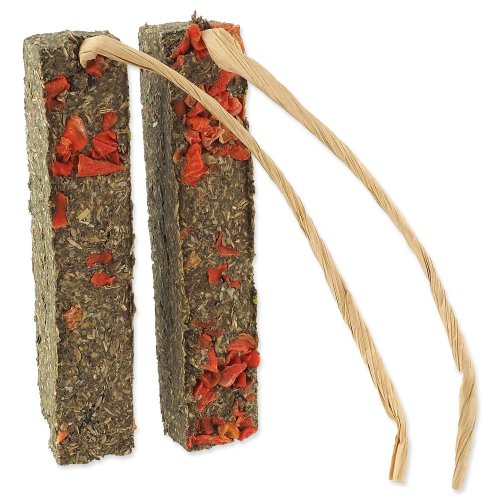 Bezobilné doplňkové krmivo pro králíky a hlodavce. Díky absenci obilnin jsou tyčinky velice vhodné pro králíky, morčata i činčily. Tyto přírodní pamlsky jsou vyrobeny bez přidání umělých barviv. Díky svému složení obsahujícímu sušené bylinky jsou plné vitamínů, minerálů a antioxidantů. Přidaná sušená mrkev podporuje chutnost produktu.