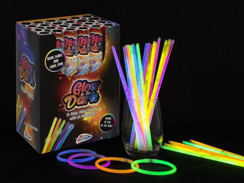 Sada 15 ks svítících tyčinek, baleno v tubě, součástí balení je i 15 kusů spojovačů - k vytvoření svítících náramků. Tyčinku ohněte po celé délce (neohýbejte příliš silně), aby zářila. Po pár minutách se zcela rozsvítí. Ohni, zatřepej a užívej si zábavu.