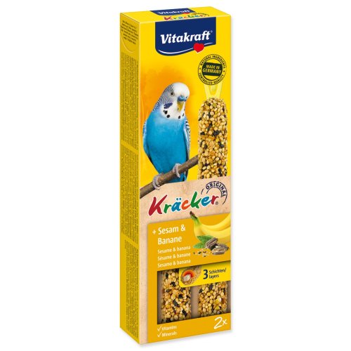 Doplňkové krmivo - lahodné tyčinky s banány pro andulky a malé papoušky. Tyčinky slouží k doplnění krmné dávky a také zkrácení dlouhé chvíle v kleci. Receptura bez cukru.