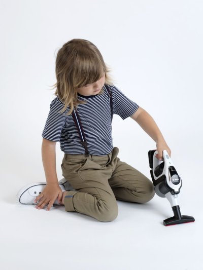 Vysávejte doma jako maminka! S tímto modelem tyčového vysavače Bosch je vysávání skvělá zábava. Vysavač je věrnou kopií originálu, má výměnné nástavce a je možné použít trubici k proměně malého ručního vysavače na tyčový. Barevné kuličky v nádobě vysavače se během vysávání točí. Provoz na baterie - 3 ks 1,5 V AA - nejsou součástí balení. Vhodné pro děti od 3 let. Maximální výška vysavače 80 cm. Rozměry balení: 43 x 18 x 15 cm.