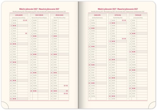 Týdenní diář Diamante 2026 v černé barvě. Povrch diáře má jemnou strukturu připomínající výbrus diamantu a je ideální pro všechny typy ražeb. Diář má zakulacené rohy, poutko na tužku a elastickou gumičku. Týdenní rozvrh s česko-slovenským kalendáriem a doplňkovou angličtinou, němčinou, maďarštinou a ruštinou.