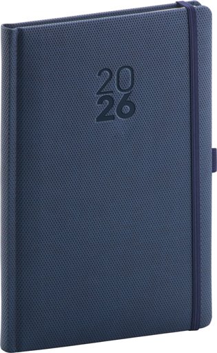 Týdenní diář Diamante 2026 v modré barvě. Povrch diáře má jemnou strukturu připomínající výbrus diamantu a je ideální pro všechny typy ražeb. Diář má zakulacené rohy, poutko na tužku a elastickou gumičku. Týdenní rozvrh s česko-slovenským kalendáriem a doplňkovou angličtinou, němčinou, maďarštinou a ruštinou.