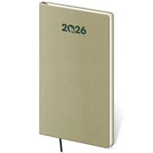 Rozměr: 8,0 x 15,0 cm Týdenní - 128 stran Materiál desek: ekologické desky diáře jsou recyklovatelné, jejich materiál je biologicky odbouratelný a při jejich výrobě byly použity obnovitelné energie.