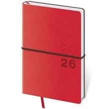 Moderní diář v měkké ohebné vazbě s kulatou příčnou gumičkou přes hřbet. Diář je příjemný do ruky díky matné kožence a lehký díky měkkým deskám. Materiál se hodí na sleporažbu, která na kožence vynikne.