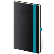 Diář je vyroben ze zajímavé matné koženky s nepravidelnou strukturou, navíc je doplněn o gumičku pro uzavření v kontrastní barvě.
