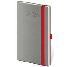 Diář je vyroben ze zajímavé matné koženky s nepravidelnou strukturou, navíc je doplněn o gumičku pro uzavření v kontrastní barvě.