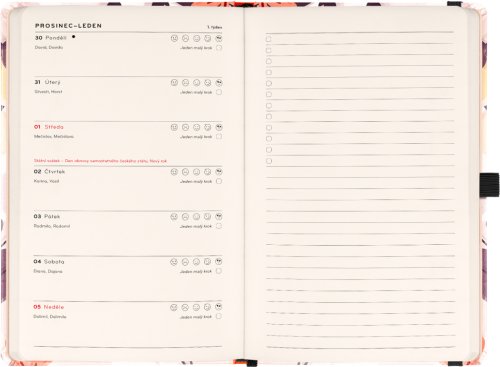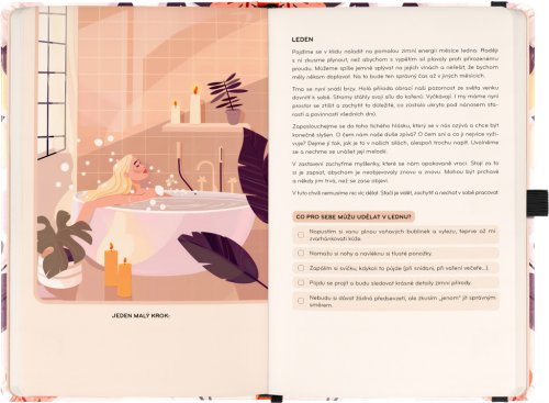 Laskavý diář vás provede rokem, nabídne motivační texty, inspirativní tipy a prostor pro zaznamenání cílů i poznámek.Laskavý diář vás provede cestou k vyváženému a pozitivnějšímu roku. Každý měsíc přináší motivační texty laděné podle aktuálního období, inspirativní aktivity a prostor pro stanovení malých cílů. Týdenní kalendárium doplňuje měsíční přehled na začátku každého měsíce, náladoměr a dostatek místa pro všechny vaše poznámky a plány.
