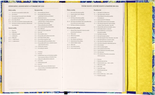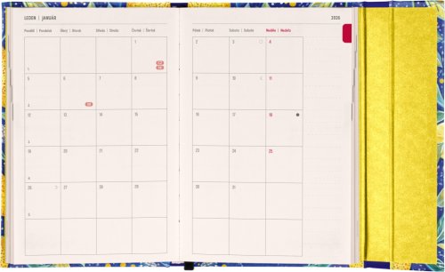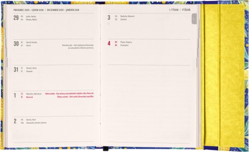 Týdenní diář s praktickým magnetickým uzavíráním je ideální volbou pro ty, kteří chtějí mít své plány přehledně pod kontrolou. Horizontální rozložení s českým a slovenským kalendáriem ve verzi týden na dvou stranách s prostorem pro poznámky. Součástí jsou praktické měsíční přehledy, ideální pro plánování dovolených či prázdnin, a také seznam českých a slovenských svátků a jmenin.