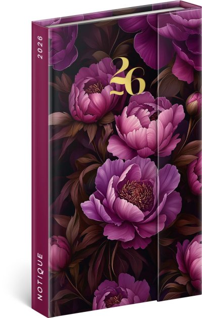 Týdenní diář s praktickým magnetickým uzavíráním je ideální volbou pro ty, kteří chtějí mít své plány přehledně pod kontrolou. Nabízí sloupcové rozvržení jednotlivých týdnů s dostatkem prostoru pro každodenní poznámky. Součástí jsou praktické měsíční přehledy, ideální pro plánování dovolených či prázdnin, a také seznam českých a slovenských svátků a jmenin.
