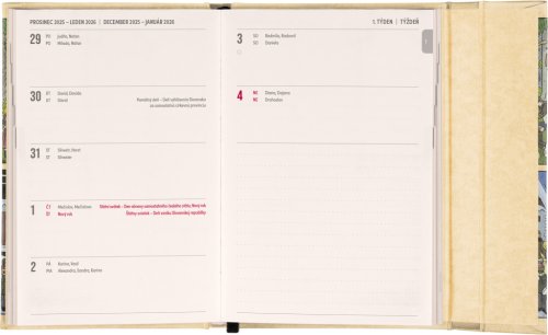 Týdenní diář s praktickým magnetickým uzavíráním je ideální volbou pro ty, kteří chtějí mít své plány přehledně pod kontrolou. Horizontální rozložení s českým a slovenským kalendáriem ve verzi týden na dvou stranách s prostorem pro poznámky. Součástí jsou praktické měsíční přehledy, ideální pro plánování dovolených či prázdnin, a také seznam českých a slovenských svátků a jmenin.
