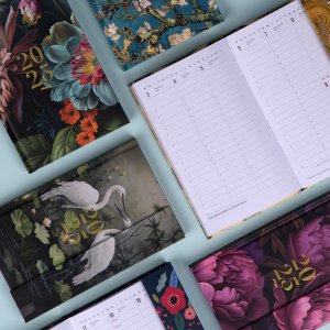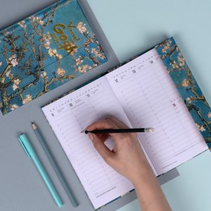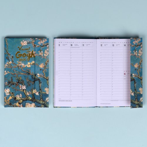 Šestijazyčný týdenní diář s magnetickým uzavíráním obsahuje přehled mezinárodních svátků, seznam českých a slovenských jmen, přehled roku 2025 a 2026, dodatečné stránky na poznámky a kapsičku na zadní předsádce. Sloupcové rozvržení s prostorem pro poznámky na každý den. Diář je v designu obrazu Vincenta van Gogha.