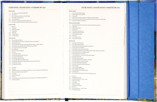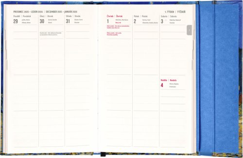 Týdenní diář s praktickým magnetickým uzavíráním je ideální volbou pro ty, kteří chtějí mít své plány přehledně pod kontrolou. Nabízí sloupcové rozvržení jednotlivých týdnů s dostatkem prostoru pro každodenní poznámky. Součástí jsou praktické měsíční přehledy, ideální pro plánování dovolených či prázdnin, a také seznam českých a slovenských svátků a jmenin.