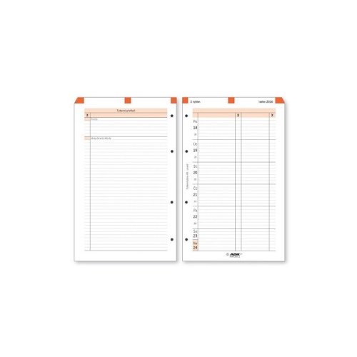 Každý týden na jeden list (1. strana přehled celého týdne, 2. strana - volné řádky na poznámky)