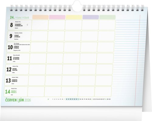 Pro zvládnutí rodinného chaosu je tady týdenní rodinný kalendář, ve kterém si čas naplánuje až pětičlenná rodina. Kalendář můžete použít jako stolní nebo ho pomocí háčku zavěsit na zeď. Obsahuje české a slovenské kalendárium.