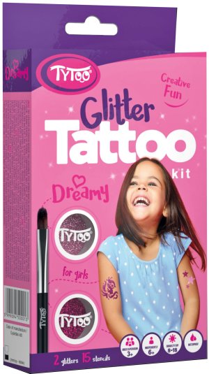 Nejpopulárnější dívčí vzory. Vzory: 15 ks. Barva: 2 ks. Vzor obvykle vydrží na kůži 8 – 18 dní. Délka této doby do velké míry závisí na typu kůže a míře opatrnosti, s jakou k tetování přistupujete. Třpytivé tetování je odolné vůči vodě, dá se však lehce odstranit alkoholem nebo dětským olejíčkem. Větší sady obsahují více nástrojů: Pohyblivé oči/samolepící kamínky: Hotový vzor můžete přizdobit. Naneste malé množství lepidla na samolepící kamínky a přitlačte jej na kůži. Přejeme vám hodně zábavy!