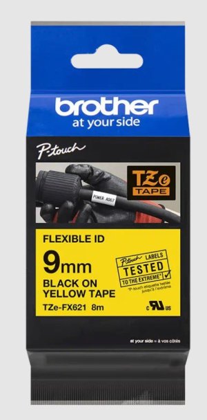 Ideální pro vytváření identifikačních štítků pro kabely, vodiče, PVC trubky nebo jiné válcovité tvary. Speciální lepidlo pásky Brother TZe-FX621 s černým tiskem na žlutém podkladu zajišťuje, že vaše důležité štítky budou mít dlouhou životnost. Kompatibilní s tiskárnami štítků P-touch, které mají logo TZ nebo TZe na krytu kazety s páskou.