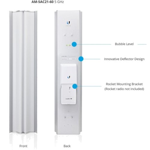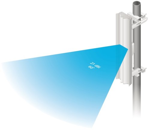 Dvoupolarizační sektorová anténa se ziskem 21dBi, vyzařovacím úhlem 60° vhodná pro jednotku R5AC-Lite. Využívá horizontální i vertikální polarizaci, čímž nahrazuje dvě samostatné antény a lze tak jednoduše vytvořit např. přístupový bod s vysokou propustností. S anténou je dodáváno i příslušenství pro instalaci a voděodolné propojení s jednotkou Rocket.