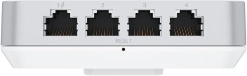 Kromě přívodního Gigabitového portu na zadní straně má také další 4 Gigabitové porty na spodní straně, kdy na prvním z těchto portů je možné využít funkci PoE passthough.
