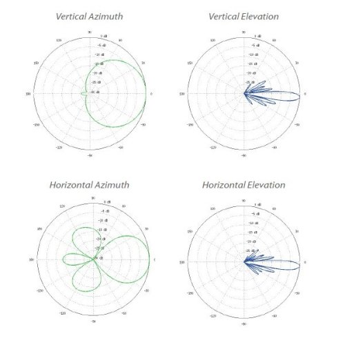 Vyzařovací úhel antény je 72° (6 dB) v horizontální polarizaci a 93° (6 dB) ve vertikální polarizaci.