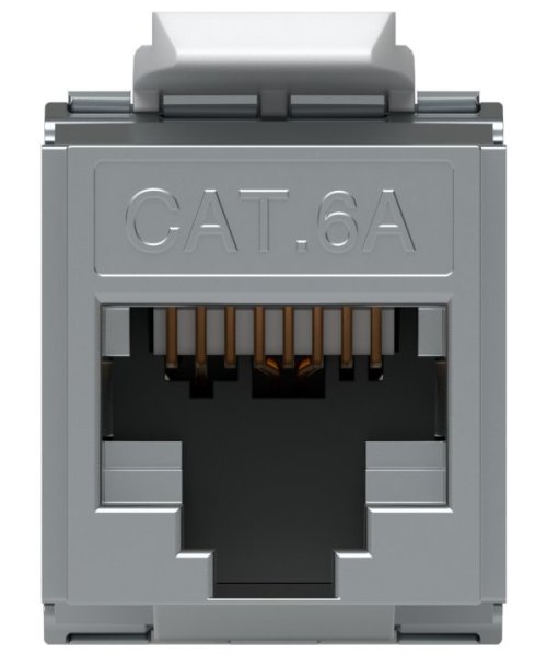 Specifikace Kategorie: 6A Standard: kompatibilní s kabeláží TIA-568A a 568B Materiál: slitina zinku Rozměry: 37,8x14,5x16,1mm Hmotnost: 22,5g