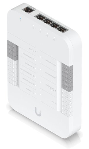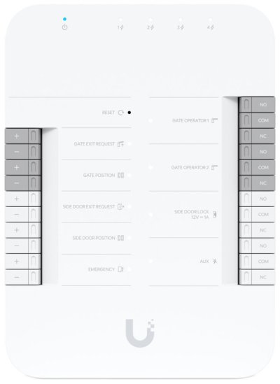 UniFi Access Door Hub je inteligentní IP kontrolér jedné brány, který je součástí řešení UniFi Access. Umožňuje bezproblémové ovládání přístupu k bráně prostřednictvím připojených přístupových čteček nebo interkomu. Splňuje certifikace CE, FCC, IC, UL 294 a CAN/ULC-60839-11-1 (Třída 1).