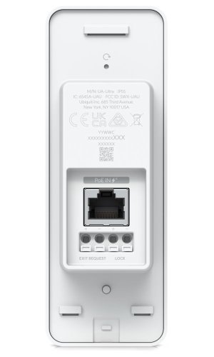 Napájení a připojení je realizováno skrze RJ-45 port s podporou PoE+. Odemknutí je realizováno pomocí NFC karty nebo aplikace UniFi Identity.