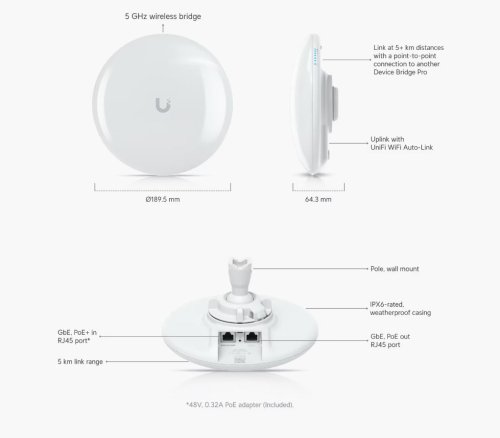 Propojte se na vzdálenosti 5+ km pomocí připojení point-to-point k jinému zařízení Bridge Pro nebo bezproblémově uplink pomocí UniFi WiFi Auto-Link