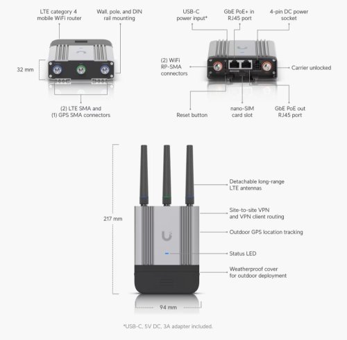 UniFi Mobile Router Industrial kompaktní, odolný mobilní WiFi router LTE Cat 4 určený pro vnitřní i venkovní aplikace IoT