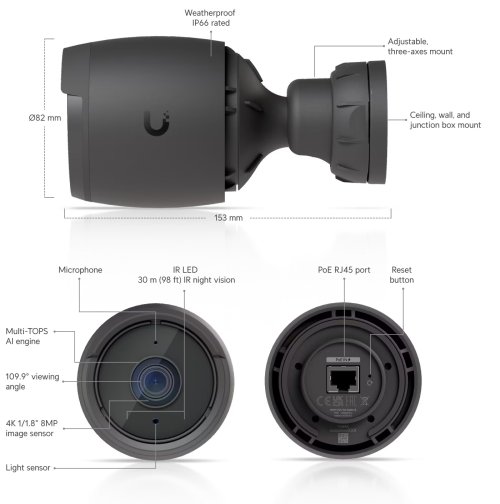 Wall, ceiling, pole mount (Included)