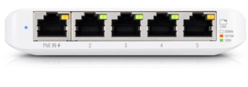 USW-Flex-Mini je maličký 5-portový Gigabitový switch se správou přes UniFi Network application od Ubiquiti v desktop provedení s prvním portem podporujícím PoE In.