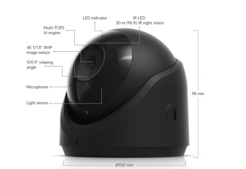 Technické specifikace Rozměry: 100 x 95 mm IR noční vidění: 30 m Rozpoznávání tváře: Ano Rozpoznávání SPZ: Ano Chytré detekce (lidé, vozidla, zvířata): Ano Rozlišení: 4K Zorné pole: H: 109,9°, V: 56,7°, D: 134,1° Audio: Mikrofon Odolnost vůči povětrnostním vlivům: IP66 Odolnost proti neoprávněné manipulaci: IK04 Montáž: Strop, stěna UniFi Application Suite: