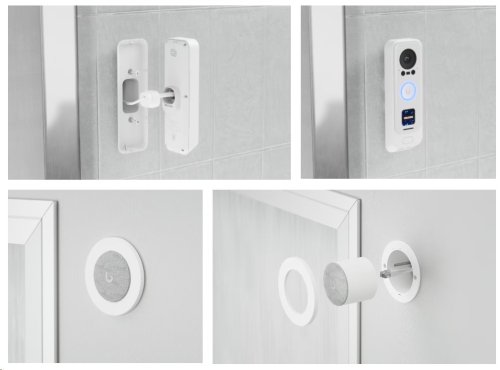 UVC-G4 Doorbell Pro PoE Kit je sada vnitřního zvonku a venkovního tlačítkového videozvonku s přenosem dat pouze po ethernetu. Venkovní jednotka je vybavena přední primární 5MP kamerou a spodní sekundární 8MP kamerou na zobrazení toho, co se nachází na rohožce přede dveřmi. Hlavní kamera domovního zvonku je vybavena IR LED pro poskytování lepšího nočního vidění, které v kombinaci se spodním osvětlením zajišťuje spolehlivě jasné sledování po celý den. Zvonek je také vybaven funkcí potlačení ozvěny a obousměrným audiem pro komunikaci s návštěvníky. Navíc má programovatelný displej, který umožňuje dávat upozornění nebo pokyny k doručení kurýrům. Sada je navržená jako výkonný plug-and-play bezpečnostní nástroj a lze jej nastavit a nakonfigurovat během několika minut pomocí aplikace UniFi Protect.