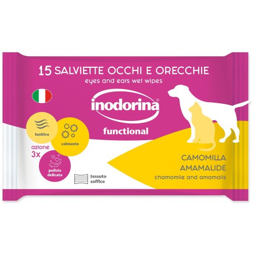Vlhčené čisticí ubrousky s heřmánkem pro zvířata. Speciálně určeny pro čistění a hygienu očí a uší zvířete. Respektují přirozené pH.