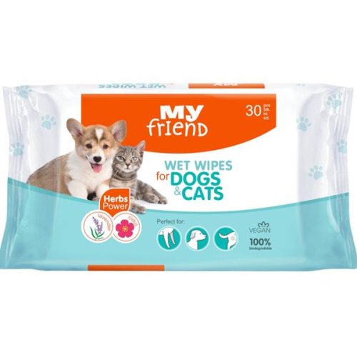 Univerzální vlhčené ubrousky My Friend oceníte při každodenní péči o vašeho domácího mazlíčka. Ubrousky jsou biologicky odbouratelné, příjemně voní a díky obsahu levandule mají protizánětlivé, zklidňující a antivirové účinky. Složení: netkaná textilie přírodního původu, namáčecí kapalina (aqua, propylenglykol, extrakt z květu levandule angustifolia, extrakt z listů/stonku květu cistus incanus, diacetát glutamátu tetrasodného, hydrogenovaný ricinový olej, peg-40, fenoxyethanol, ethylhexylglycerin, parfém, kyselina citrónová, amyl cinnamal, linalool, limonen).